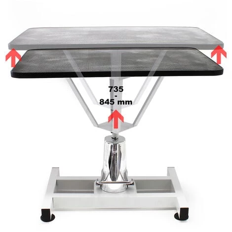 Le système hydraulique du pied est d’un grand avantage, non seulement pour le transport, mais aussi lors des soins : peu importe la taille de votre animal, un réglage en continu de la hauteur lui permettra de monter facilement sur la table.