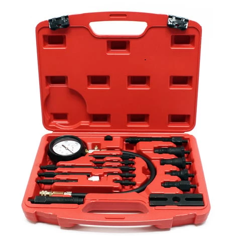 Ce set d’outils sert à tester la compression de moteurs diesel . Toutes fuites au niveau des segments de piston ou des soupapes seront rapidement détectées.