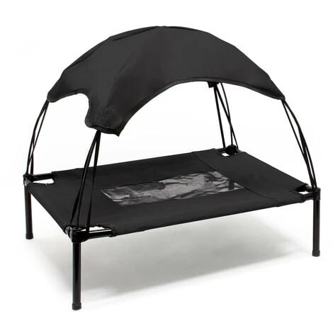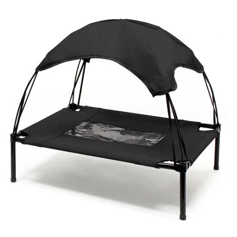 Transat Chien avec Toit L Noir 91x76x16cm 35kg Lit surélevé Chat