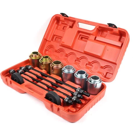Le lot de 26 pièces est fait en acier robuste et aluminium et se trouve dans un coffret pratique en plastique. Grâce à sa gamme de plaques de pression et de manchons, ce lot est compatible avec la plupart des roulements automobiles, et grâce à sa fabrication haute qualité, il est adapté à une utilisation quotidienne dans l’atelier.